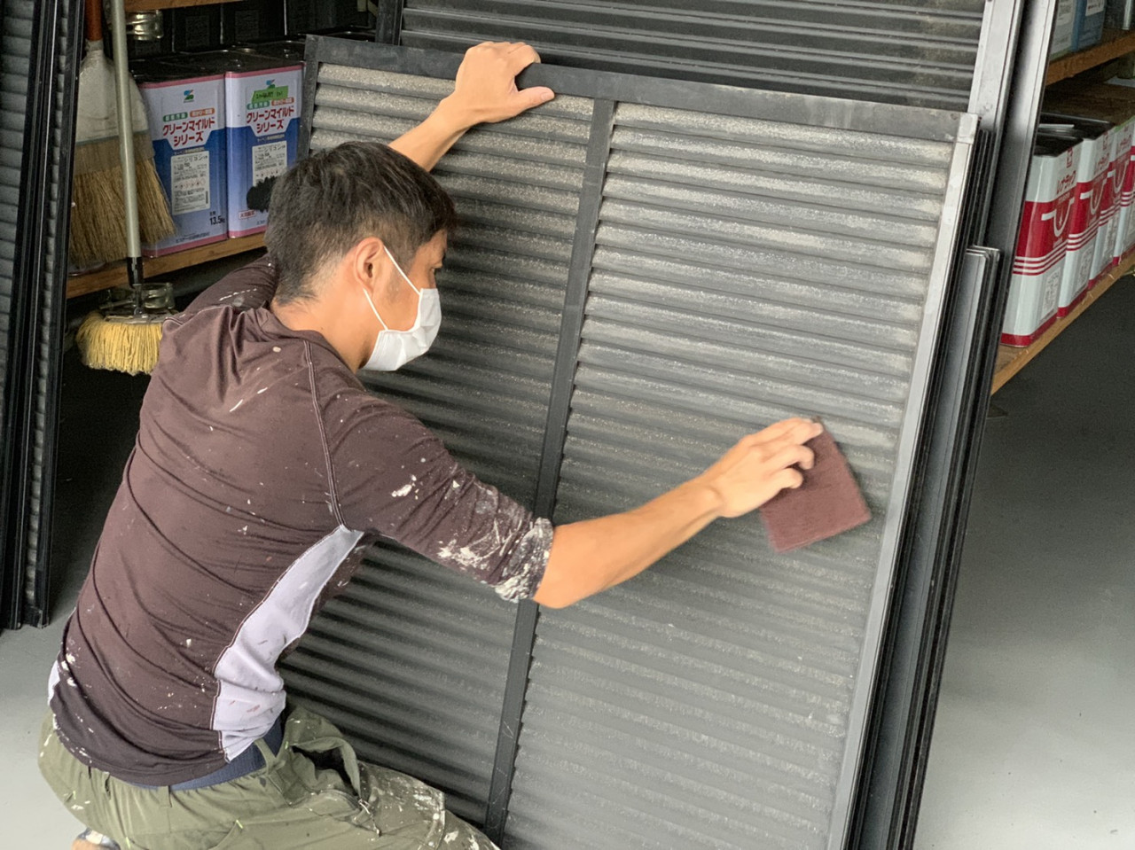 外壁塗装でお客様満足度100%を目指して日々取り組んでおります【ユウ建装】でございます 2019/10/02 雨戸塗装の為、表面をケレン、目荒らしを行います。 錆を落として表面に出てを入れ、塗料の密着性を高めます 雨戸塗装の下塗りになります。 錆が発生しないように錆止め塗料をたっぷりと塗り込みます。 ブログ