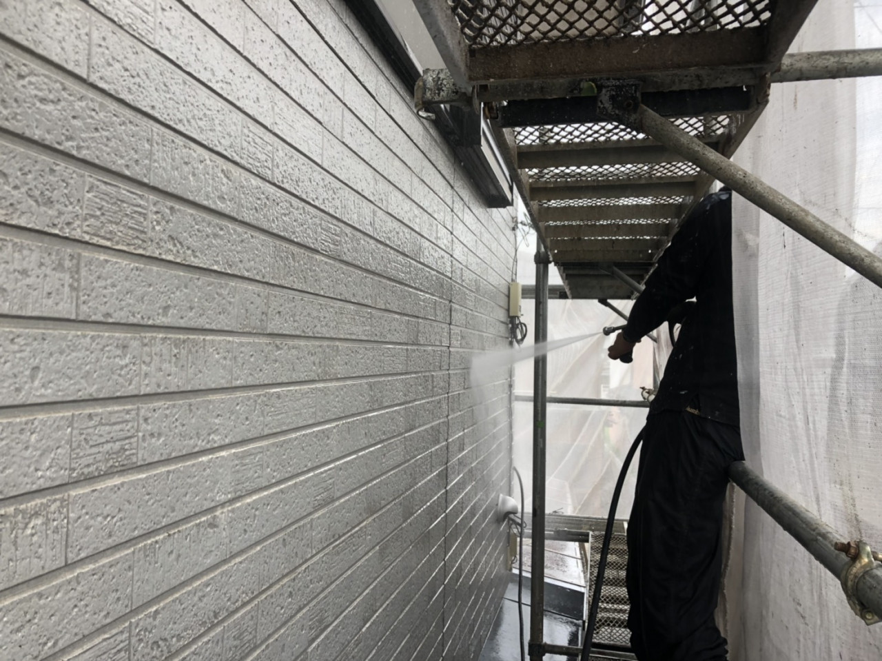 外壁塗装の最初の施工でもある高圧洗浄です。
