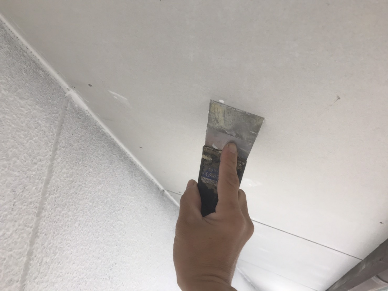 外壁塗装の見積り相場は?|ユウ建装 2019/10/15 本日は高松市国分寺町の現場です。 既存の軒天井が劣化で剥がれていたので、ケイカル板を上貼りしてパテで釘を隠しています。 パテ処理が終われば、まずは1回目の塗装です。 軒天井は合計2回塗りますので、しっかりとした仕上がりになります。 当社の施工事例はコチラです。 施工事例 ブログ