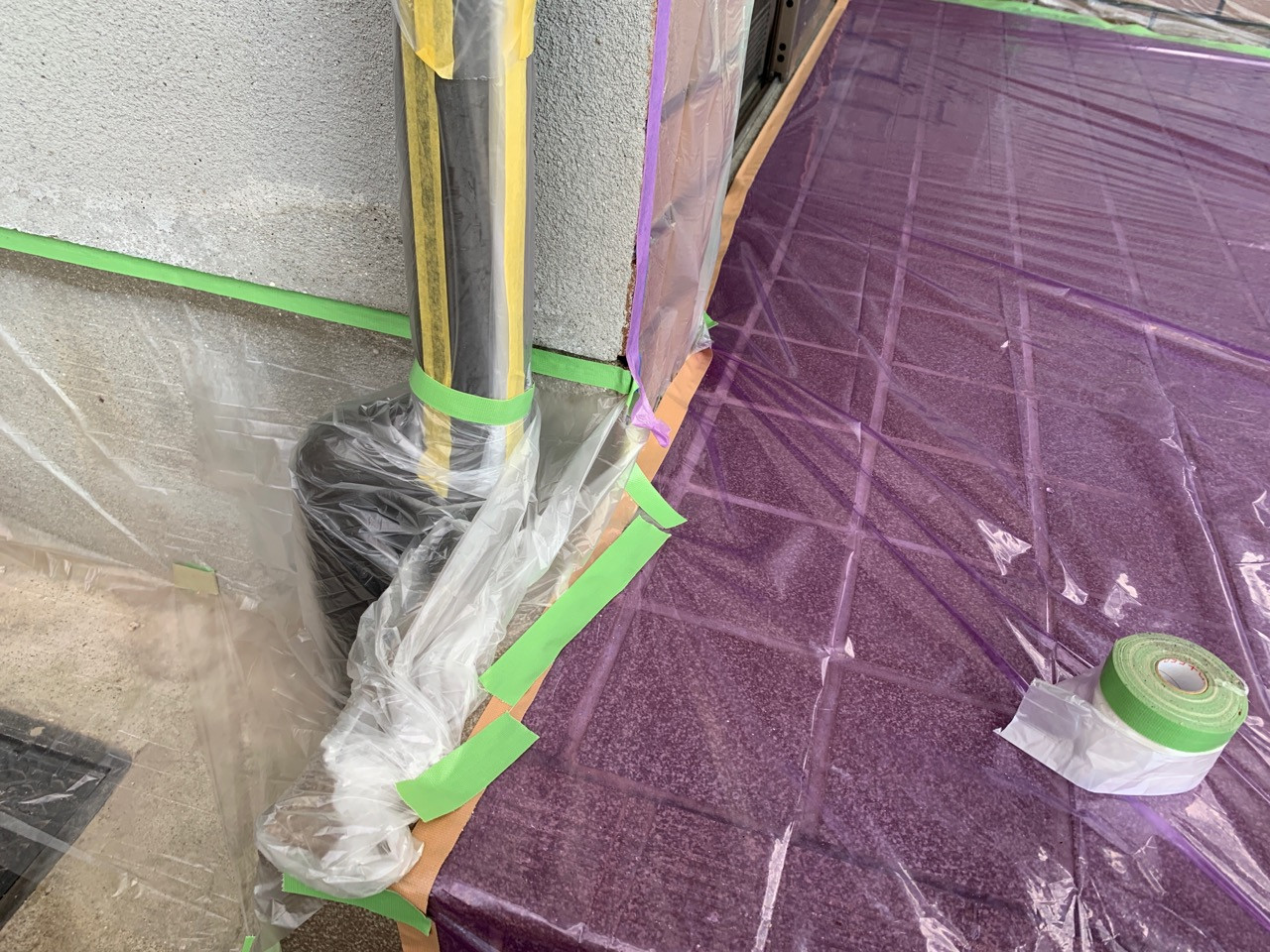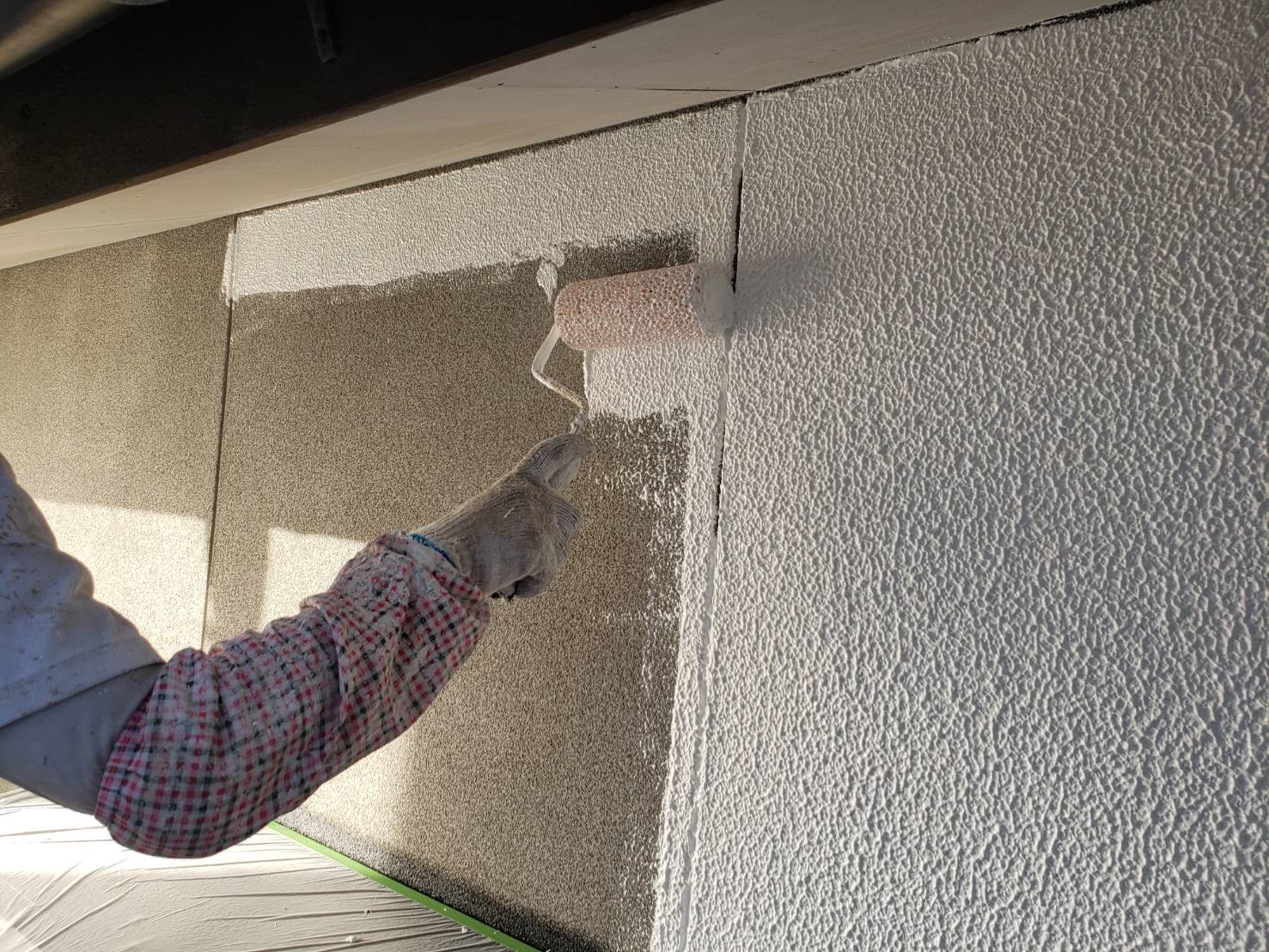 外壁塗装のお見積もりの適正価格なら香川県高松市の【ユウ建装】 2019/10/16 昨日に引き続き窓や土間に塗料が飛散しないように養生致します。 外壁塗装の下塗りです。波型模様塗りをする事で厚みが付き外壁の耐久性を高めます。 ブログ