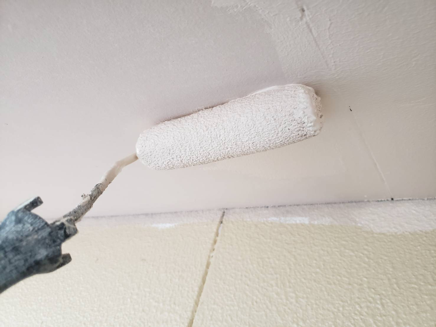 本日は軒天井塗装の1回目と2回目になります。