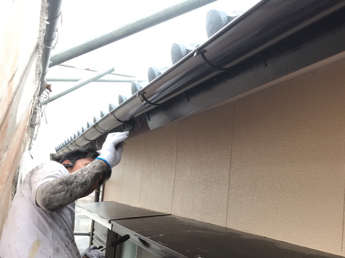 外壁塗装工事後の10年保証、香川県高松市の【ユウ建装】 2019/10/25 香川県高松市の外壁塗装の本日の作業です。 雨樋、鼻隠し、庇板金の上塗り1回目と2回目になります。 シリコン塗料をたっぷり塗り込み耐久性を高めていきます。 施工事例はこちらになります ↓ 施工事例 ブログ