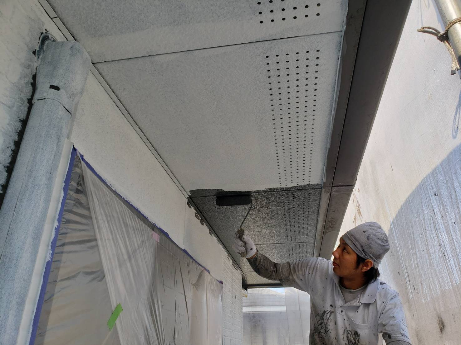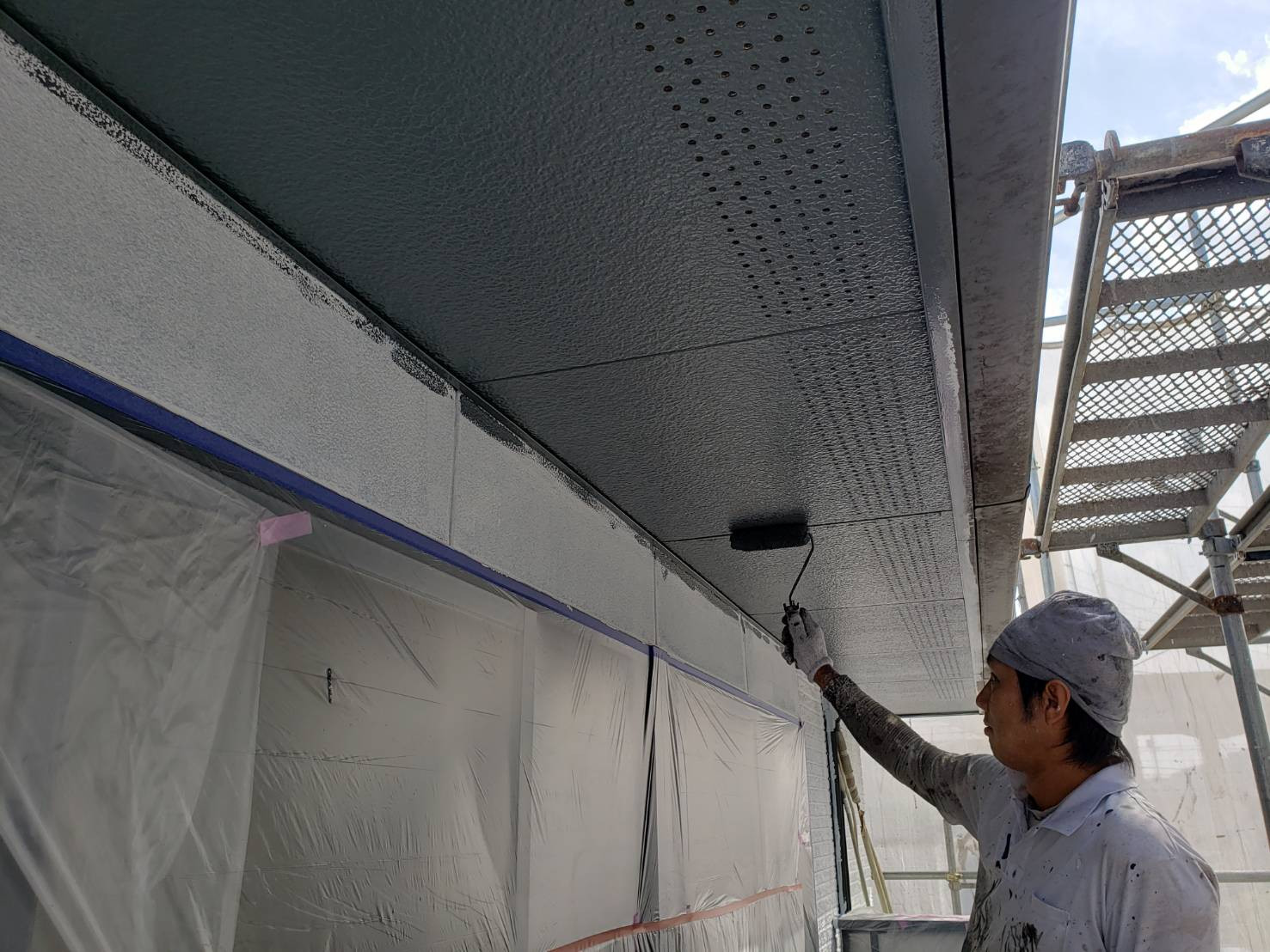 外壁塗装 塗り替え 評判|香川県高松市ユウ建装 2019/10/31 香川県綾歌郡宇多津町の本日の作業です。 軒天井の中塗りと上塗りになります。 SK化研のクリーンマイルドシリコン(2液形弱溶剤シリコン塗料)を塗っております。 外壁塗装の中塗りになります。 こちらも同じく2液形弱溶剤シリコン塗料になります。 耐久性を高める為塗料をたっぷりと塗り込みます。 屋根のタスペーサー取付になります。 塗装をすると屋根と屋根の間が塗料で詰まり雨水の抜け道がなくなり雨漏りの原因になりますので隙間を開けます。 ↓ 施工事例はこちらになります ブログ