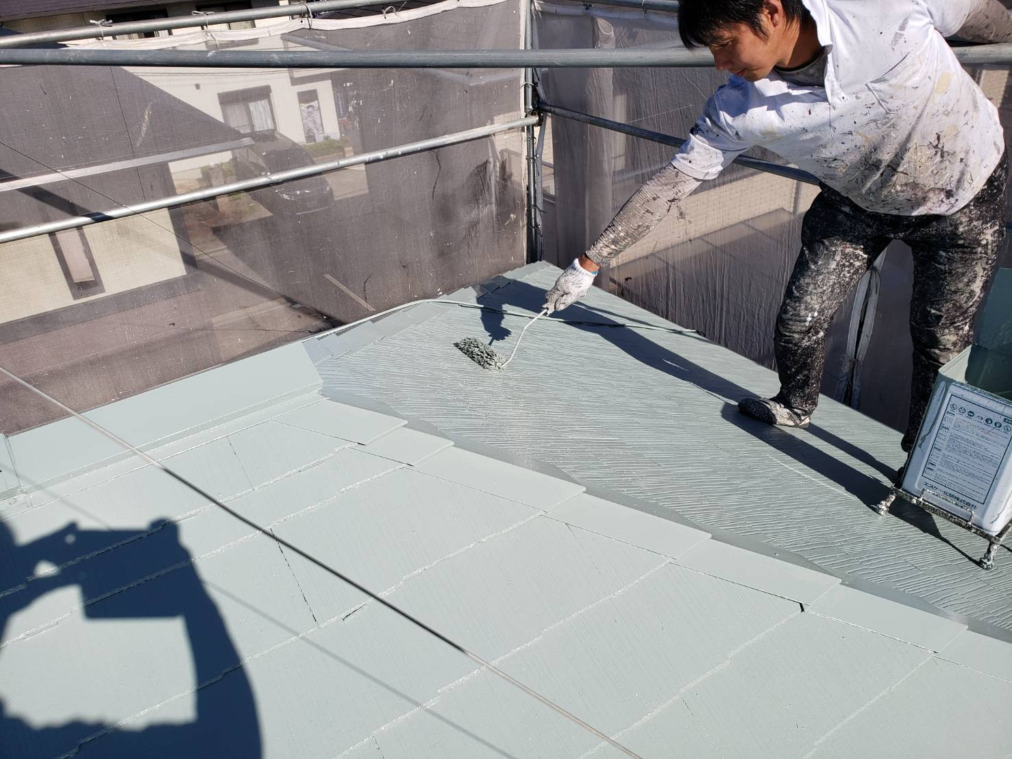 外壁塗装のお見積りの適正価格なら香川県高松市の【ユウ建装】 2019/11/02 香川県綾歌郡宇多津町の本日の作業です。 外壁塗装のダブルトーン2回目の作業です、お客様に喜んで頂けるよう丁寧に仕上げていきます。 カラーベスト/コロニアル屋根の上塗りになります。 シリコン塗料をたっぷりと塗り込みます。 ↓ 施工事例はこちらになります ブログ