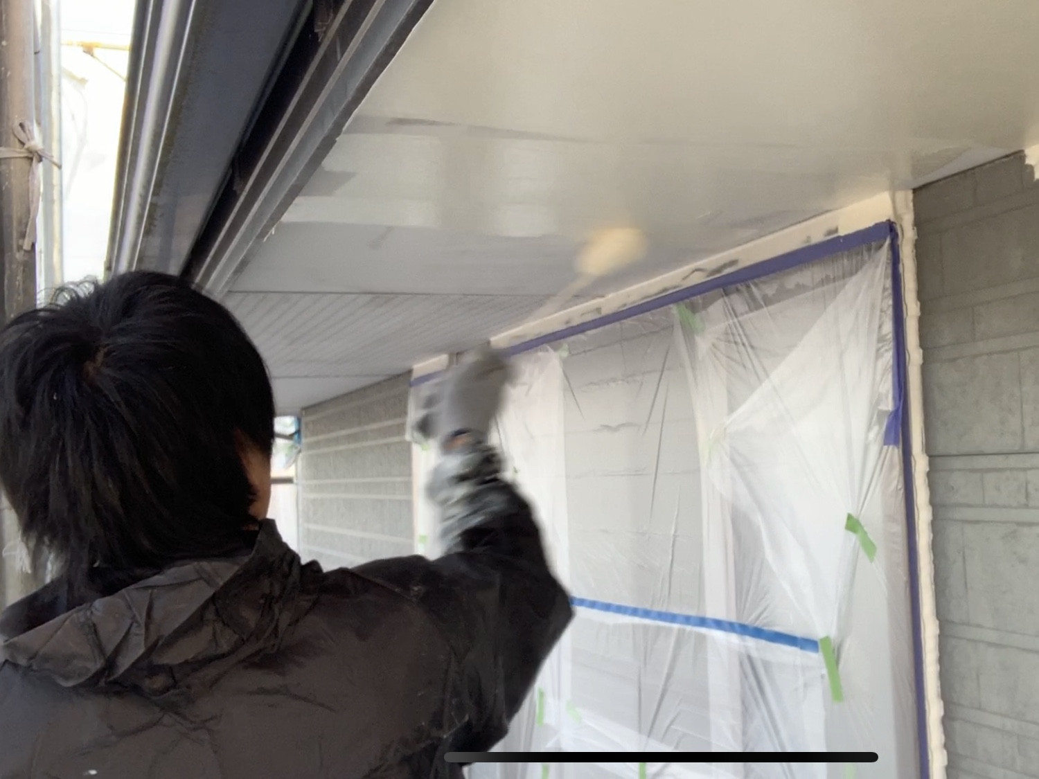 外壁塗装、屋根塗装の口コミで評判!香川県高松市の【ユウ建装】 2019/11/21 香川県木田郡三木町の本日の作業です。 塗料が飛散しないように窓や土間の養生をしっかり致します。 軒天井の塗装の1回目と2回目になります。防カビ材配合塗料をたっぷりと塗り込みカビの発生を抑制致します。 日本ペイントのケンエースを塗っていきます。 施工事例はこちらになります ブログ