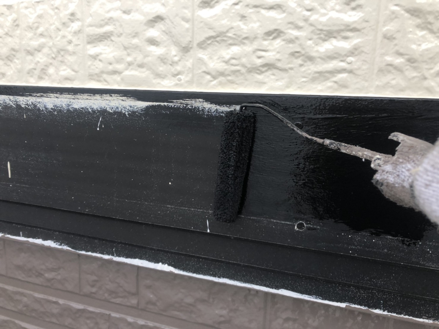 高松市で塗替えを検討中なら即日お見積り提出で大好評の高松市のユウ建装へ 2019/11/24 香川県木田郡三木町の本日の作業です。 外壁塗装の上塗りになります。上塗り材は同じ塗料を2回塗るのですが当社は色を変えて塗ります。塗り残し防止ときちんと3回目の塗装をしていることを把握していただく為に色を変えております。 SK化研のクリーンマイルドシリコン(2液型弱溶剤シリコン塗料)を使用致します。 壁と壁の間にある幕板を塗装致します。サッシ色に合わせた黒色を塗装致します。 施工事例こちらになります ↓ 施工事例 ブログ