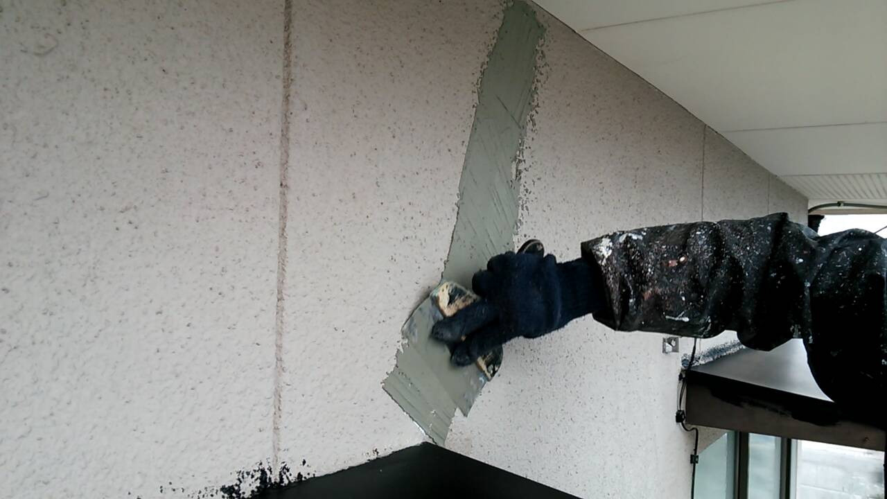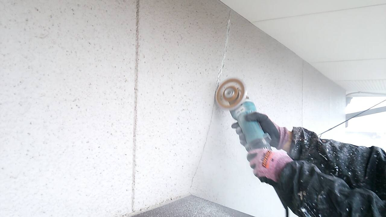 外壁の塗り替えなら香川県高松市のユウ建装へ 2019/11/26 高松市十川西町の現場です。 本日は外壁のヒビ割れ箇所の補修作業です。 まずグラインダーでUカットをします。 ヒビ割れ箇所のUカットした部分にプライマーを塗ります。 そしてコーキングを充填します。 最後にカチオンを塗ります。 この後、しっかりと乾かしてシーラーを塗り、スキンの補修吹きをしていきます。 施工事例はコチラ ブログ