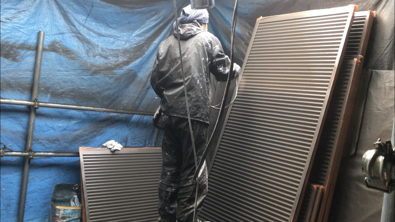 外壁 屋根 塗り替え 評判|香川県高松市ユウ建装 2019/12/02 本日は十川西町の現場の雨戸の吹付けです。 サビ止めは数日前に吹付けしていたので、今回は中塗りと上塗りの作業です。 この様に雨戸もしっかりと3度塗りで綺麗に仕上がります。 施工事例もご覧ください。 施工事例はコチラ ブログ