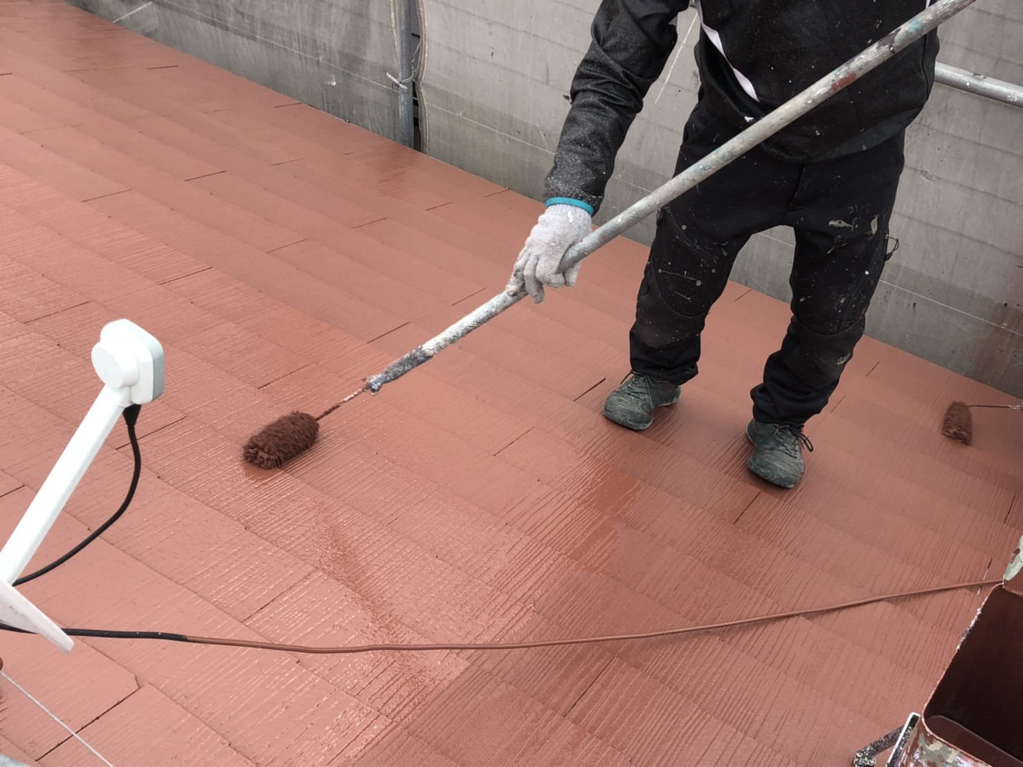 お家の外壁塗装、屋根塗装の口コミの評判 香川県高松市の【ユウ建装】 2019/12/11 香川県綾歌郡の今日の現場内容です。 外壁塗装の中塗りになります。下塗りを厚塗りをしているので中塗り塗料がかなり吸い込むので吸い込みが止まるまでたっぷりと塗りたいと思います。塗装は塗るじゃなく塗料を載せていくが僕なりの正しい表現の仕方だと思います☺ 屋根の上塗りです。屋根は特に紫外線を直接浴びるので外壁よりも痛みが早いです。たっぷりとシリコン塗料を塗りこみます。SK化研のプレミアムルーフSiを使用致します。 外壁の上塗りになります。屋根同様に色を変えて塗装致します。理由は塗り残し防止の為とお客様にちゃんと4回塗りをしているのをご確認いただく為です。SK化研のクリーンマイルドシリコン(2液形弱溶剤シリコン塗料)を使用致します。 施工事例はこちらをクリック! ブログ