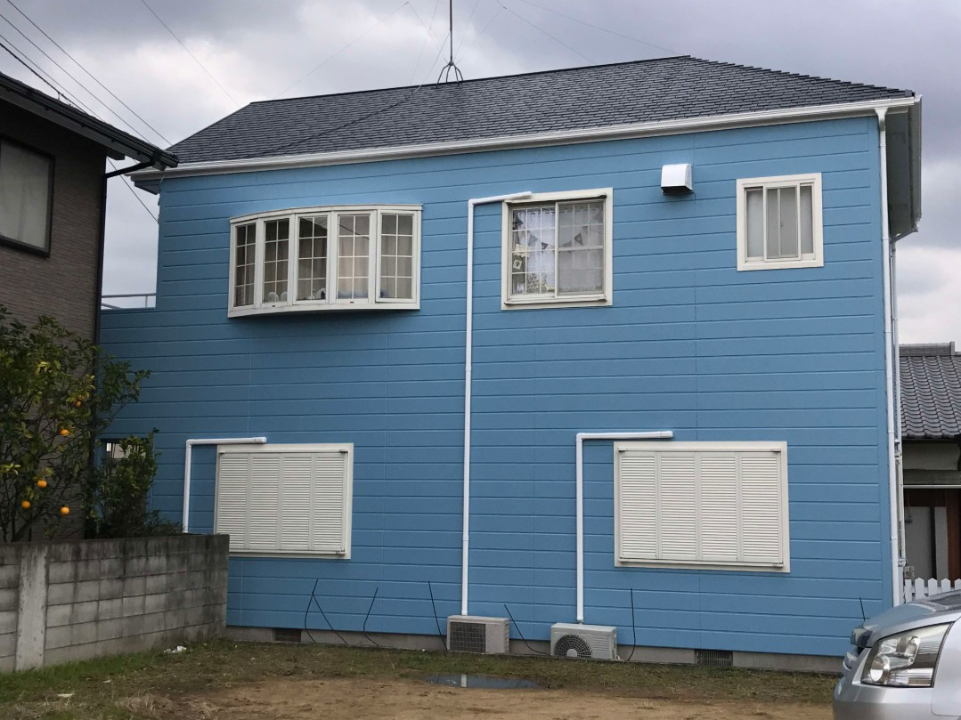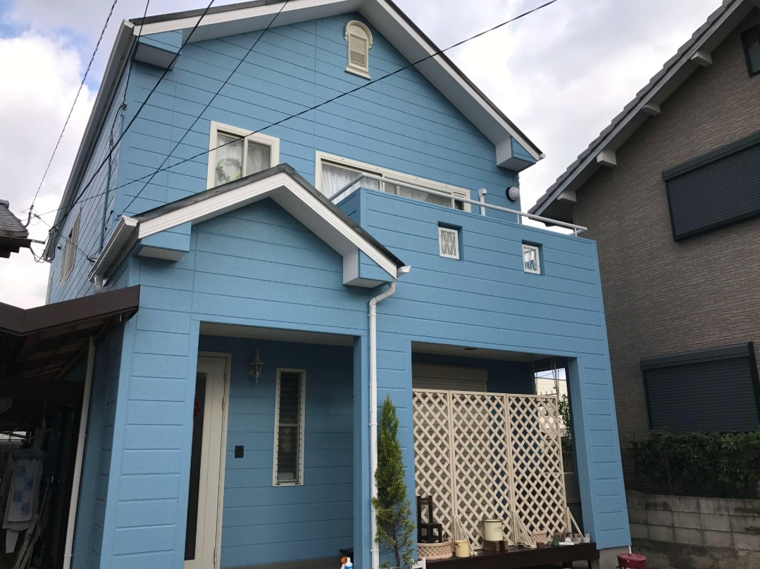 次の外壁塗装する時はブルー系の色がいいと決めておられたお客様で何度かサンプルを作ってお決めになられました。
