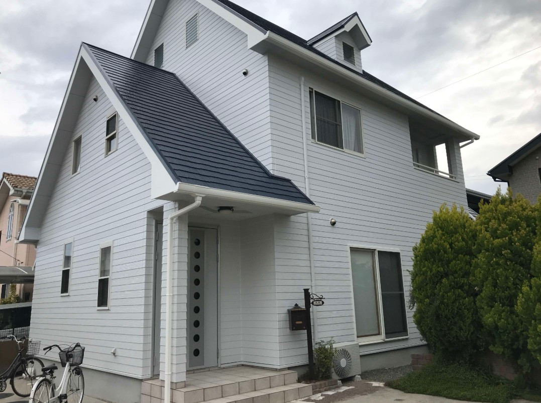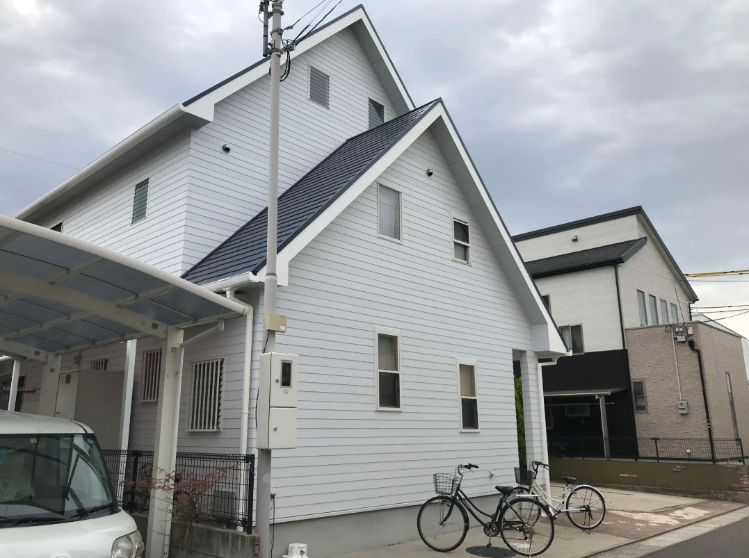 今回のお客様は雰囲気を変え清潔感のある白系にしたいというご要望でした。それに合わせて屋根はダークグレーをお選び頂きました。