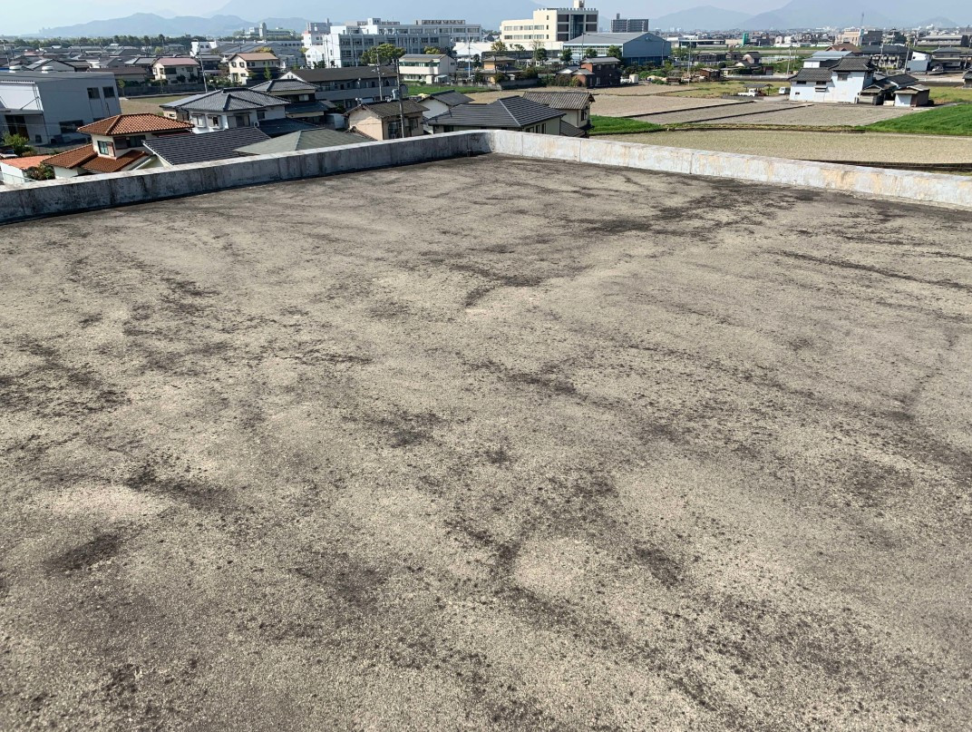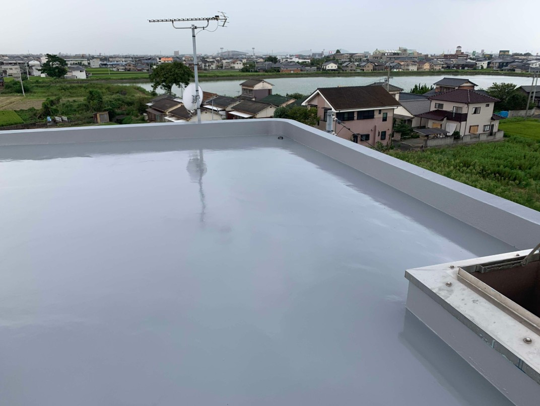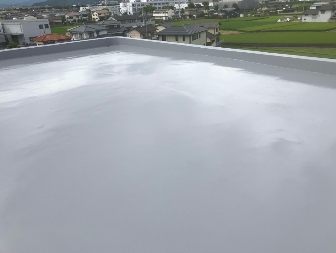 お客様所有の防マンション屋上のウレタン防水工事です。雨漏りのないようたっぷりとウレタン樹脂を流し込みました。