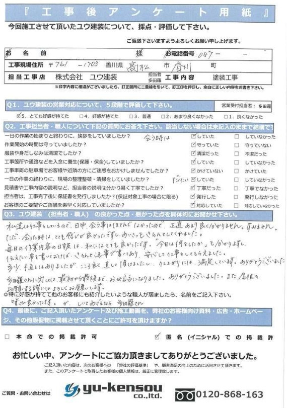 多田羅さんには最初から最後までお世話になりました。ありがとうございました。また、屋根をお願いする際にはよろしくお願いします。