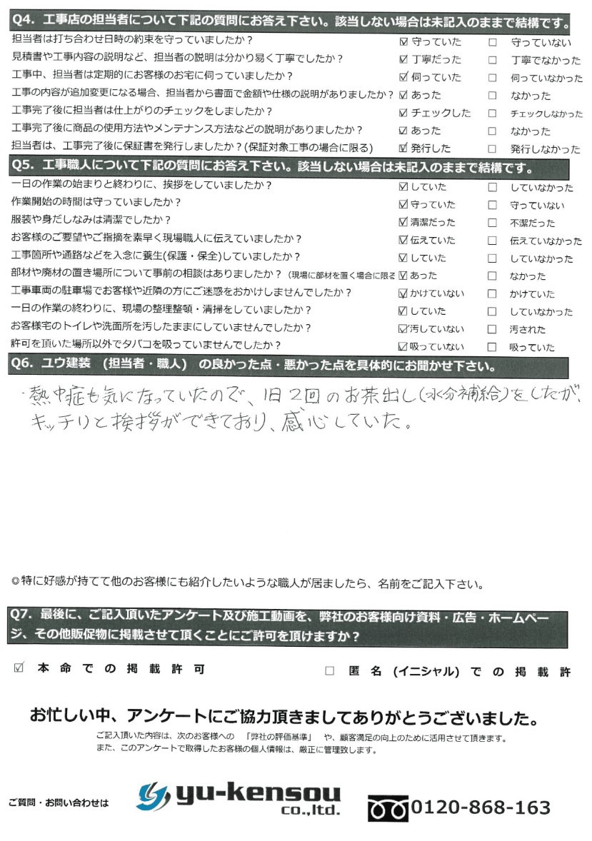 築18年を迎え、自宅屋根、外壁工事について大川瓦店(おおやぶ)社長に相談した所、御社を紹介されました。