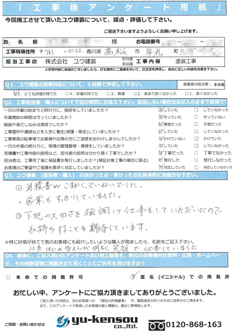 ◎見積書がこまかくてていねいでした。 営業もすっきりしていました。