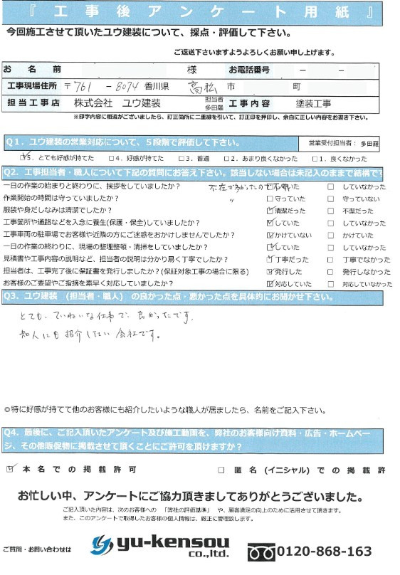 とても丁寧な仕事で良かったです。
